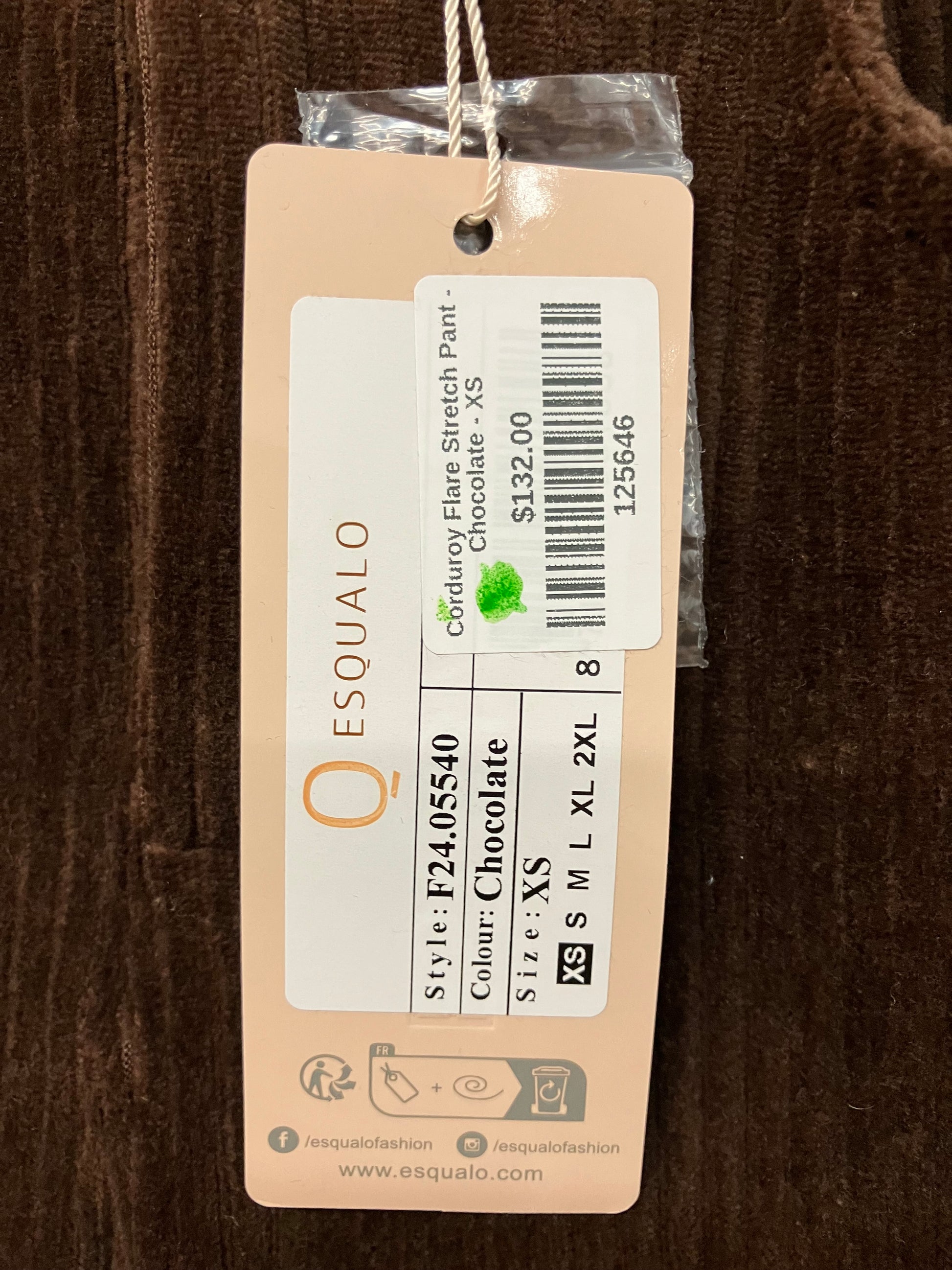 Shop the Esqualo Chocolate Corduroy Flare Stretch Pants in size XS. Brand new with tags (NWT), these stylish pants combine a flattering flare silhouette with the softness and stretch of corduroy fabric. The rich chocolate color adds warmth and versatility, making them perfect for both casual and dressy outfits. Elevate your wardrobe with these trendy, comfortable pants!