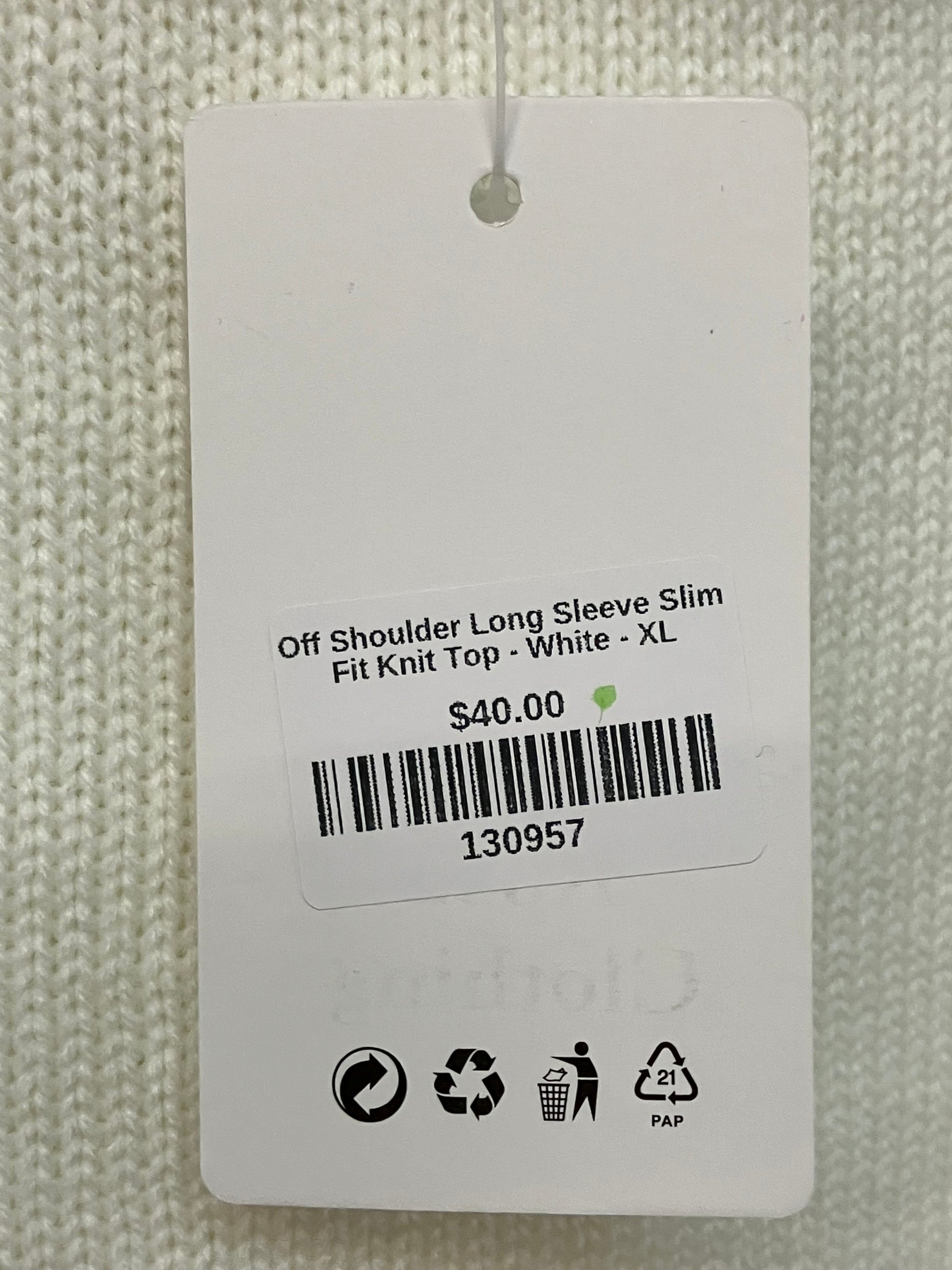 Shop the Rosa Clothing Off-Shoulder Long Sleeve Slim Fit Knit Top in elegant Cream White, size XL. This brand new with tags (NWT) top features a flattering off-shoulder design and a slim fit, offering both comfort and style. Perfect for adding a touch of sophistication to any outfit, this versatile top is a must-have addition to your wardrobe.